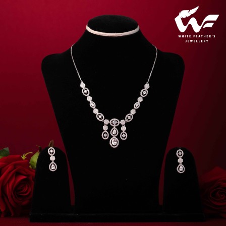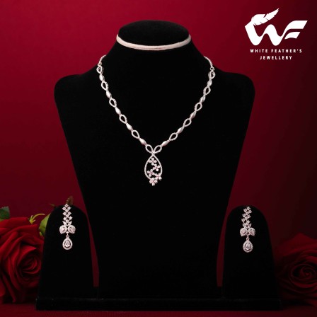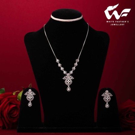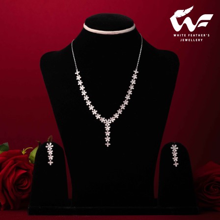 White Jasmine Silver Necklace Set