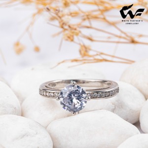 White Feathers Stone Silver Ring for women
